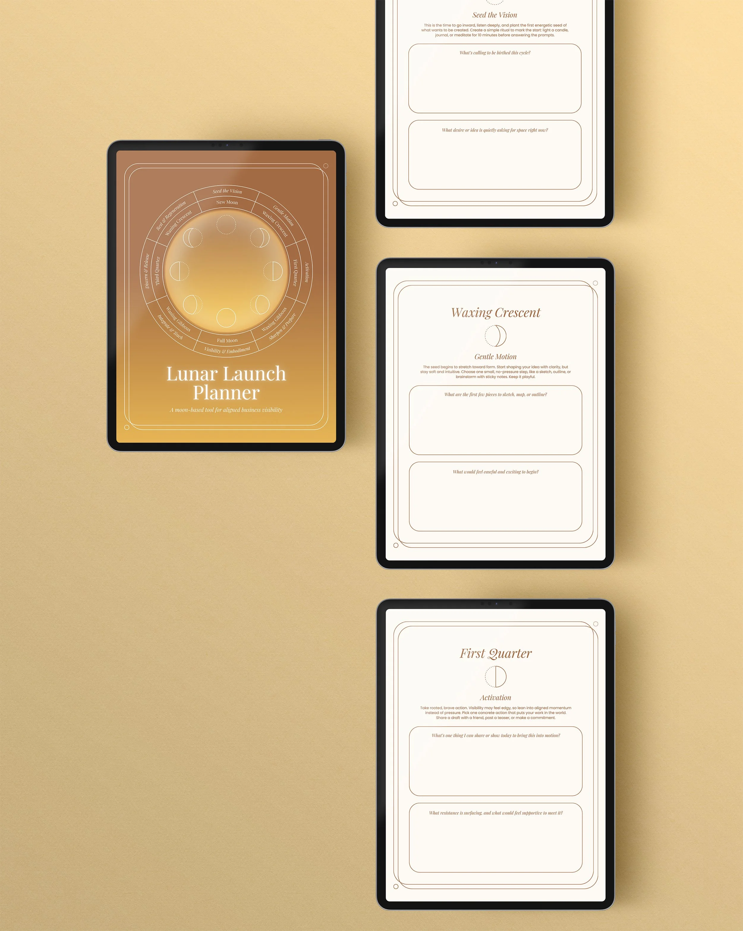 This printable planner walks you through the 8 phases of the lunar cycle, helping you align your brand launches with clarity, timing, and intention. Use it to plan your next offer, build momentum without burnout, and bring more rhythm into your creative flow. Perfect for founders, creators, and coaches who value intuitive structure and ritual in their business.